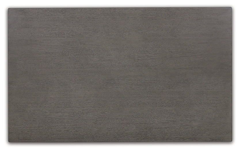 Details | Includes counter height dining table and 6 counter height bar stools, Table made with hardwood solids, acacia veneer and MDF substrate, Stools made with solid hardwood frames, Antiqued gray wash finish, Polyester upholstery, Foam cushioned seats, Nailhead accents, Assembly required | |