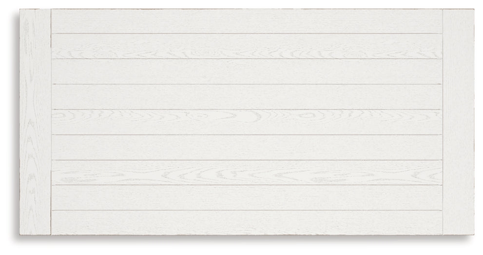 Details | D642D7: Includes dining table top and base, Made with rubberwood solids, ash veneer and MDF substrates, Antiqued white finish with wood grain texture, Two 10-bottle wine storage shelves (1 reversible), Lower door cabinet accessible from both sides, 2 pass-through drawer bins, Assembly required, D642-124: Made with wood, Antiqued white finish with wood grain texture, Foam cushion with polyester upholstery, Nailhead trim, X-back, Assembly required, | |